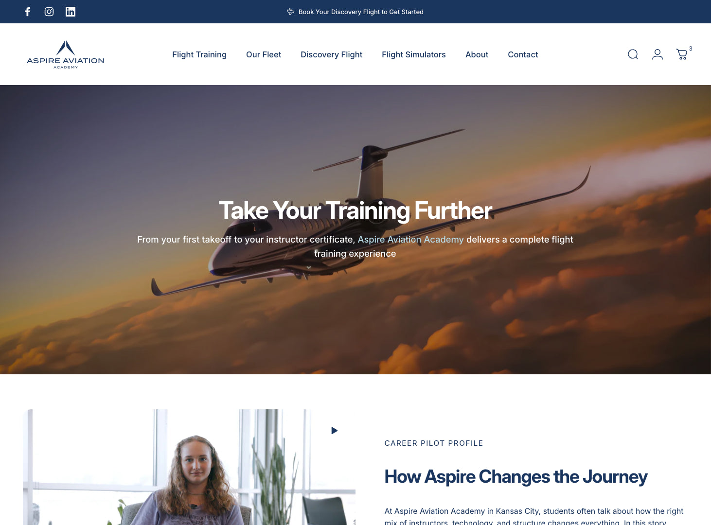 Aspire needed to fill new aircraft capacity fast and elevate their brand to match their status as the top aviation academy in Kansas City. Their programs, instructors, and fleet were best in class, but their digital presence did not reflect their true market leadership.