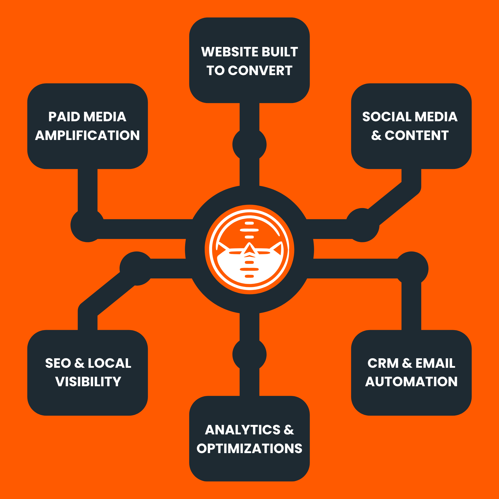 From high-performing websites to CRM automation and campaign management, our team builds growth programs that keep your marketing running smoothly, your schedule full, and your revenue climbing.
